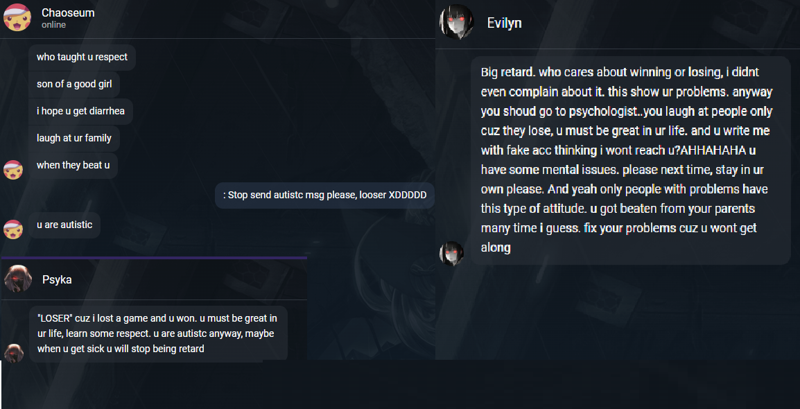 This idi0t wrote to me with his multi-account to insult me after winning a game XDDDDD