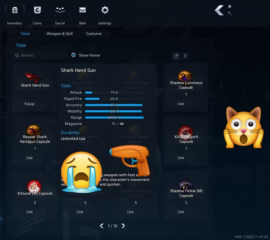 No, thanks god xD but to be honest i rather prefer that shark gun than those plasmas swords i get. I wish I could exchange them for zp or smt :x